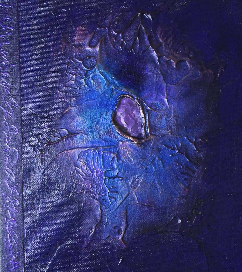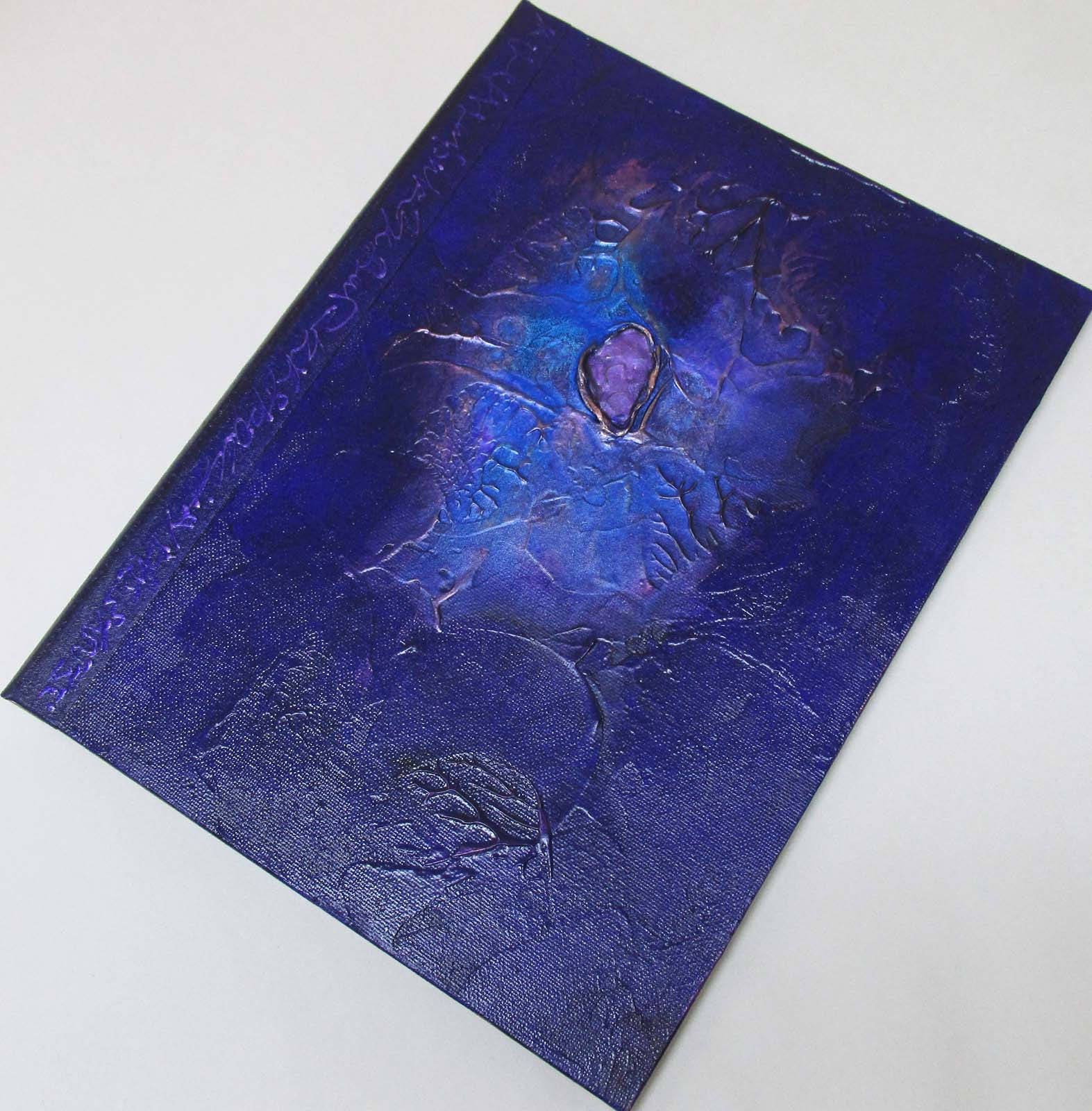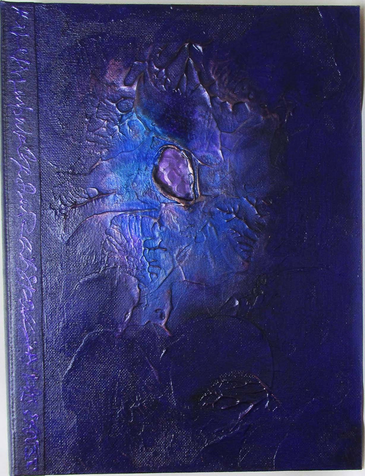 This journal has been painted with acrylic paints. The inside covers have been glazed with copper paint and distressed.